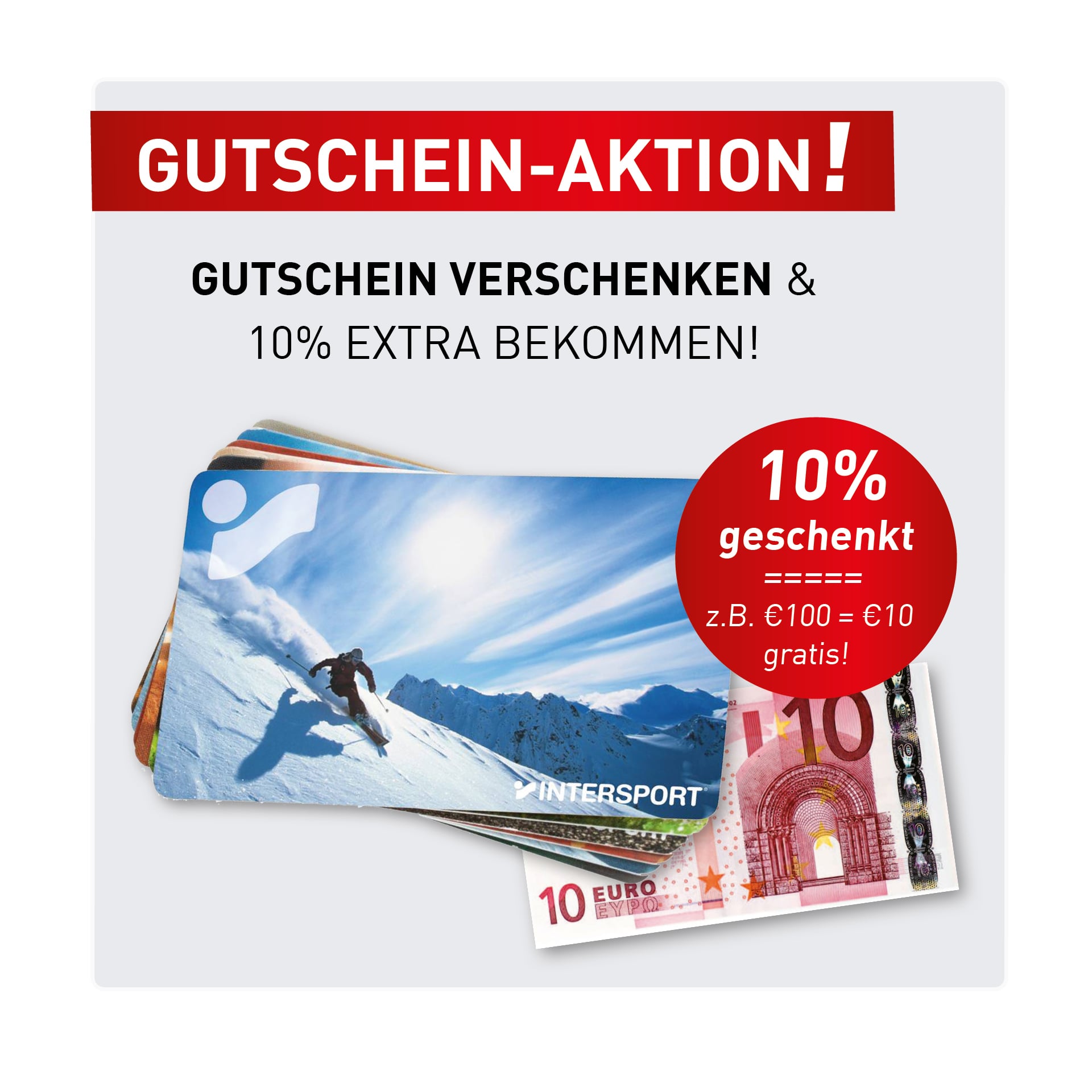 - Gibt’s unter intersport.de im Wert von 20€/ 50€/ 100€